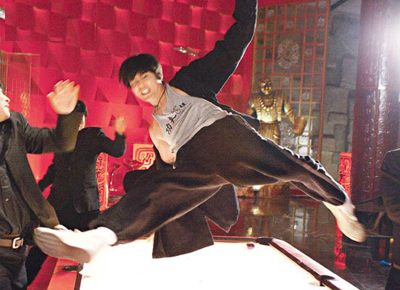 中新網(wǎng)1月16日電 周杰倫在新片《大灌籃》中,單獨(dú)與80名壯漢惡拚連場,一幕凌空飛腿后落地?cái)[出金雞獨(dú)立姿勢的場面,連動作導(dǎo)演程小東也不禁大贊。