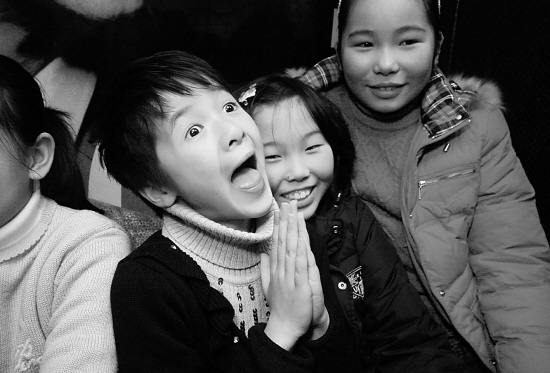 記者就坐在徐嬌一家三口前面一排,大銀幕上的徐嬌在那里哭在那里笑,看電影的徐嬌臉上是什么表情呢?記者回頭發(fā)現(xiàn),她看得十分認(rèn)真,笑的時(shí)候一起笑,哭的時(shí)候卻不哭。她說(shuō),已經(jīng)看了很多遍了,都麻木了。要十歲的小朋友哭可不是件容易的事,有好幾場(chǎng)哭戲,演的時(shí)候都哭不出來(lái),媽媽只能擰她,疼得她眼淚一下就下來(lái)了。