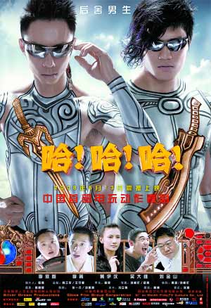 昨天,由羅燕和劉利年聯(lián)合執(zhí)導(dǎo),黃伊汶、吳大維、后舍男生、李菁等主演的國內(nèi)首部電玩動作喜劇《哈哈哈》確定上映日期為5月13日。羅燕信心十足:“《哈哈哈》一定能讓全國觀眾哈哈哈笑起來!绷_燕說,“那時候《鋼鐵俠》差不多下片了,同期上映的只有一些國產(chǎn)片,因此對我們非常有利!彼f《哈哈哈》原定去年11月公映,可試片時觀眾不滿意,因此她緊急召回導(dǎo)演、演員進(jìn)行補(bǔ)拍!拔业碾娪胺庞嘲l(fā)行都按照國際慣例。當(dāng)時我在全北京城找了203個平均年齡在25歲的年輕觀眾。通過對他們的試卷調(diào)查,發(fā)現(xiàn)他們覺得原先的《哈哈哈》太普通,不出挑!闭{(diào)回演員、導(dǎo)演,花10多天重新補(bǔ)拍電影的一大半,之后加入大量的動畫制作,“我還加入了電玩的元素。在好萊塢,電影拍完后,游戲產(chǎn)品會隨之開發(fā)利用!绷_燕說。而通過重新拍攝剪輯,如今的《哈哈哈》思路更清晰,也更好玩了。