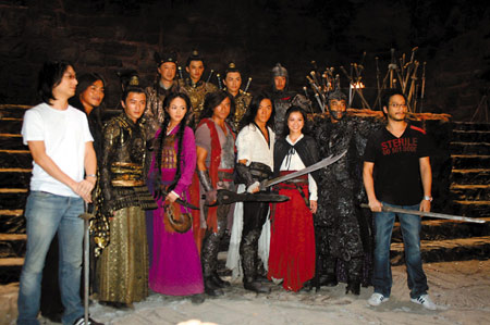 昨天,香港導(dǎo)演彭氏兄弟率領(lǐng)郭富城、鄭伊健、阿Sa、任達(dá)華、謝霆鋒、何家勁、唐嫣等電影《風(fēng)云2》的主要演員,在拍攝地泰國曼谷與來自內(nèi)地、香港、臺灣以及新加坡、馬來西亞等地的記者見面。在溫度高達(dá)40度的攝影棚里,明星們個個鎧甲披身,熱得汗流浹背,苦不堪言。