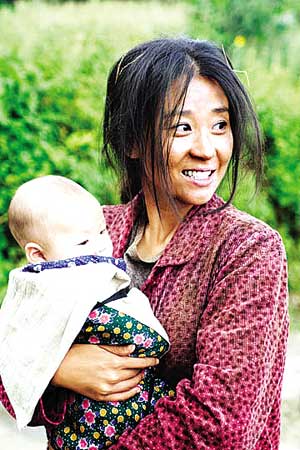 還有櫻桃為紅紅送傘的戲,一路上,無數(shù)次跌下梯田的田埂,卻又堅(jiān)強(qiáng)地爬起來,好不容易到達(dá)了學(xué)校,站在雨中,那樣純真無邪地笑著看著紅紅,眼中不帶任何雜質(zhì)。即使沒有語言,僅僅一個微笑,已讓人感動淚流。