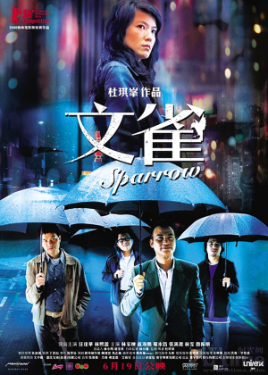 《文雀》不單看起來不像杜琪峰,連“聽”起來都讓人有這種感覺。杜琪峰以前寧愿用一些冷酷的臺詞來點(diǎn)燃靜默的鏡像,很少會在影片里用太多的音樂來烘托全片!段娜浮穭偤孟喾,臺詞少、音樂多,這一點(diǎn)倒也跟王家衛(wèi)有點(diǎn)像。在影片開始的一段里———任達(dá)華一句話都沒說,縫完衣服,一只小鳥飛了進(jìn)來,他釋放它之后小鳥又飛了回來,他笑了笑,就推單車出門了。直到任達(dá)華騎車穿過長長的街,到達(dá)茶餐廳和其他三個賊同伙見面之后,他才開口說話。