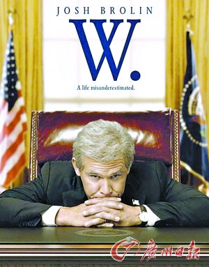 其中一張海報(bào)表現(xiàn)的是“小布什”在白宮總統(tǒng)辦公桌前百無聊賴的模樣。上方的宣傳語寫著:“一段被誤解的人生”。