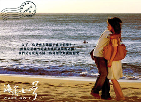 最近,臺灣很流行一句話:“你,海角了嗎?”源于一部賣座臺灣本土電影《海角七號》。目前,這部電影的票房已經(jīng)超過3.2億元新臺幣(約8000萬元人民幣),刷新了臺灣有正式票房統(tǒng)計以來華語電影票房的最高紀(jì)錄,不僅超過了《色,戒》,還一舉將16年前成龍主演的《超級警察》踢下冠軍寶座。據(jù)說,有影迷竟連看18遍,片中“永不放棄”的小人物成為了大家的“心靈雞湯”。難怪導(dǎo)演魏德勝發(fā)話:“別小看臺灣電影!”
