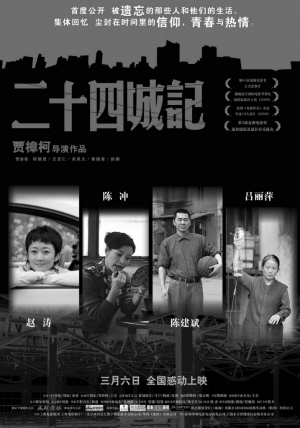 《二十四城記》作為第61屆戛納電影節(jié)正式競(jìng)賽片,不久前入選美國(guó)《電影評(píng)論》雜志2008年度十大佳片。全球?qū)⒂谐^三十個(gè)國(guó)家發(fā)行該片,是今年最受國(guó)際矚目的華語電影之一。盡管導(dǎo)演賈樟柯一再表示《二十四城記》早已靠海外發(fā)行成功收回成本,然而新作是否能被中國(guó)主流的電影觀眾接受,依然是一個(gè)至關(guān)重要的問題。