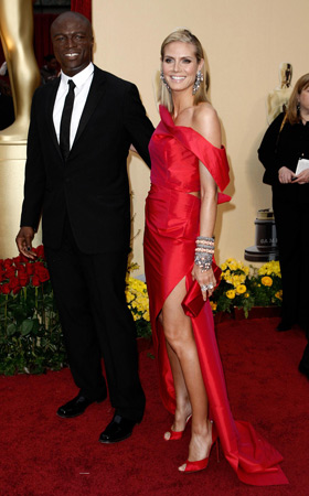 美國西部時(shí)間2月22日下午17:00(北京時(shí)間2月23日上午9:00),第81屆奧斯卡金像獎(jiǎng)?lì)C獎(jiǎng)典禮在洛杉磯柯達(dá)劇院舉行。圖為名模海蒂·克拉姆(Heidi Klum)與老公Seal攜手亮相奧斯卡紅毯。一身紅色禮服的海蒂更顯高貴典雅。