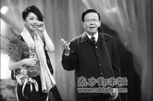 2008年度影視頒獎(jiǎng)盛典7日晚揭曉,周迅的恩師謝鐵驪導(dǎo)演親自為她頒獎(jiǎng),讓周迅不禁激動(dòng)落淚:“沒有謝導(dǎo)就沒有今天的我!(見上圖)當(dāng)宣布邀請(qǐng)謝鐵驪導(dǎo)演登臺(tái)頒獎(jiǎng)時(shí),原本在臺(tái)上的周迅立即沖下去,走到觀眾席親自攙扶謝導(dǎo)走上舞臺(tái)。18年前周迅在銀幕處女作《古墓荒齋》,正是出自謝鐵驪導(dǎo)演之手。此番再次會(huì)面,讓兩人都是感慨不已。