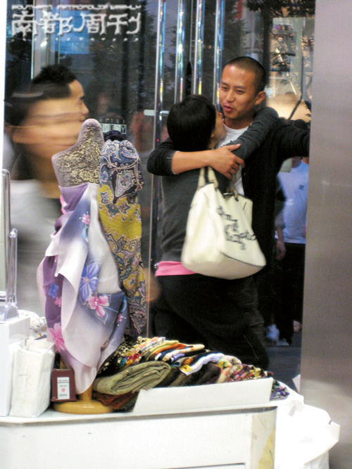 韓國街頭,孫儷和鄧超旁若無人地相擁。