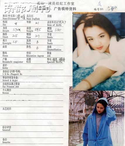 湯唯的前經(jīng)紀(jì)人竺明至今難忘她第一次見到湯唯的那個下午,19歲的湯唯陪著同學(xué)來他的文化經(jīng)紀(jì)公司面試,結(jié)果被錄取的卻是“無心插柳”的湯唯!八臈l件非常不錯,給人的感覺很清爽、很陽光、很豪爽,見了會讓人眼前一亮,大大咧咧的,有男孩子個性。健康、陽光、充滿朝氣,這感覺就像一個運動員!