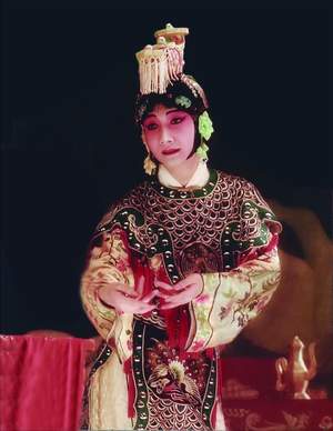 照片中的“Leon版”梅蘭芳,虞姬做手與眼神看出他下過不少工夫,但因先天條件不足,Leon的臉型本屬長方形,縱使靠兩邊大貼片“打救”,面相也難營造出具女性美的鵝蛋臉、下巴尖尖的效果,加上并非眼睛圓大的Leon,眼神欠了一點(diǎn)嬌美媚態(tài),跟擁有一張鵝蛋臉、圓大眼睛及性感的豐厚嘴唇,天生一副美人胚子的梅蘭芳相比,就算Leon竭盡所能演繹,也礙于先天輪廓及形態(tài),跟梅蘭芳韻味有一大段距離。反之,在片中飾演梅蘭芳青年版的余少群,外形條件加上他有十多年漢劇文武小生的功底,神態(tài)與造型吸引得多。