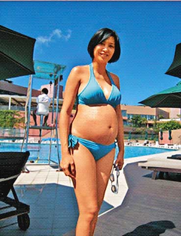 據(jù)報(bào)道,盧淑儀生產(chǎn)前效法不少外國(guó)女星般拍攝大肚泳衣照,她在7月27日的網(wǎng)志中,張貼自己在泳池邊拍攝的三點(diǎn)式照片!班,我的好友,來(lái)看看我的寶貝越來(lái)越大,好開(kāi)心!”其后又在10月10日貼上另一幀大肚照,即將生產(chǎn)的她用尺量腰圍,并指腹大便便的肚子說(shuō):“我的腰圍43吋!”