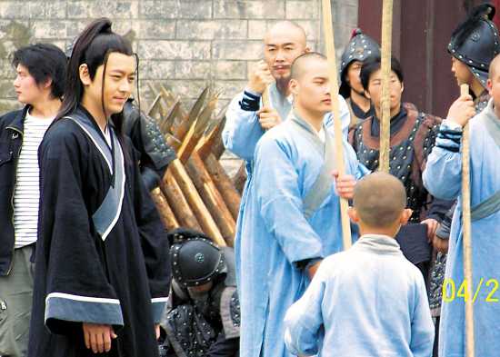 在劇里演青年皇帝的林志穎是前天下午才進劇組的。昨天中午他拍的是與元彪率領的少林十八僧沖出洛陽城門的一場戲。說是一場戲,記者在現(xiàn)場看到,其實也不過是幾分鐘左右的鏡頭——從“洛陽”城門徐徐打開,到一臉凜然的眾僧與林志穎抄著長棍短棒從里沖出來,然后在城門口一個亮相的定格。就這么一個場景,來來回回折騰了大約有一個多小時:城門開了,沖!重來!城門再開,再沖!還是不行,再跑!