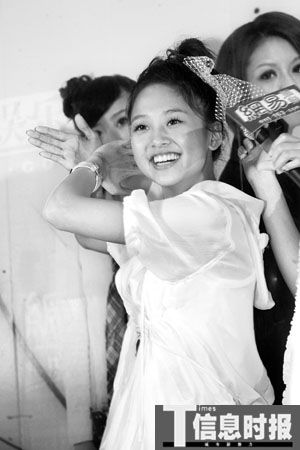 裝可愛是這群小女生的拿手本領(lǐng),應(yīng)主持人要求后,MeiMei率先在臉頰邊擺出OK的手勢,再配合微嘟的嘴,十分可愛。走氣質(zhì)美女路線的Apple則使出“一陽指”功夫,緊貼嘴唇做出“噓”的動作。大牙左右手并上,動作幅度大,謀殺了不少菲林。搞怪的鬼鬼擺出像龜波氣功的姿勢還笑說:“這是翻蓋手機!倍蠓降乃粏柶鹑藲飧呤欠褚驗楹秃谌恕巴印(其實只是房東跟房客的關(guān)系)時,就立刻流露出羞澀的神態(tài)一個勁揮手:“哎呀,不要這么說,他是好哥哥,很照顧我而已!