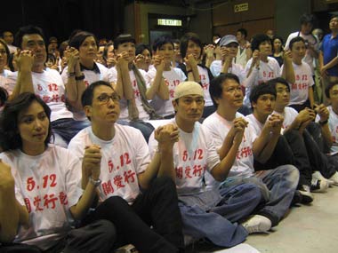 中新網(wǎng)5月16日電 中國(guó)四川省汶川縣遭遇特大地震災(zāi)害,震動(dòng)波及半個(gè)亞洲,數(shù)以萬計(jì)民眾罹難,災(zāi)情牽動(dòng)神州大地, 牽動(dòng)全世界關(guān)注的目光。香港演藝人協(xié)會(huì)、香港無線電視、亞洲電視、香港電臺(tái)、鳳凰衛(wèi)視、新城電臺(tái)六間機(jī)構(gòu)共同組織“一方有難,八方支持”行動(dòng),香港媒體及演藝界人士積極響應(yīng),15日深夜,兩百多位歌、影、視藝人及媒體從業(yè)人員齊聚香港電臺(tái),參與大合唱錄音,為四川地震災(zāi)民祈福、加油、打氣。