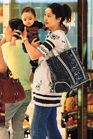 李克勤愛子樣子精靈可愛,盧淑儀抱他逛商場十分搶眼。