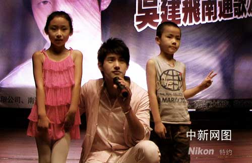 在歌友會上吳建飛演唱了《偏偏愛上你》、《你離開以后》等歌曲,還演唱了自己作詞,潘瑋柏譜曲的《手拉手》。接著又與幸運歌迷大玩心心相印和夾乒乓球等游戲,引發(fā)現(xiàn)場歌迷連連尖叫。歌迷代表還貼心的送上風箏,祝偶像一飛沖天,唱片大賣。最讓吳建飛驚喜的是現(xiàn)場來了2位年僅5歲的鐵桿小粉絲,居然都可以完整的演唱完吳建飛的新歌。在被問及七夕將至有何約會時,害羞的吳建飛漲紅了臉,坦言現(xiàn)忙于工作無暇去好好經營一段感情。反而比較期待第二天的奧運會開幕式。說起心目中女友的標準,吳建飛表示兩個人在一起舒服就好了,但是她要顧家、體貼、溫柔,最重要是要孝順父母。