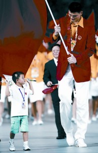 運(yùn)動員入場,頭上有個疤痕的小男孩牽著姚明的手步入,開心地?fù)]手。他是林浩,他的父親林大坤在接受晨報記者采訪時透露,開幕式結(jié)束后,林浩用“很自卑”形容自己和姚明走在一起的感受,原話是:“我很自卑。他是全場最高的人,我是全場最矮的人!