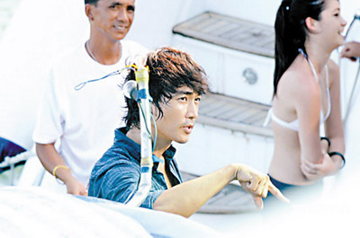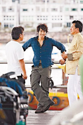 前天清晨,劇組共出動兩艘游艇、兩艘快艇以及兩艘小艇出海拍攝,男主角宋承憲穿藍(lán)色襯衫打扮邋遢,露出古銅色皮膚,李妍熙則以白色低胸露背裝打扮清涼。宋承憲每拍完一場戲就返回碼頭挨在欄桿乘涼,與工作人員有說有笑。當(dāng)記者上前訪問,宋承憲禮貌地以“Sorry”示意拒絕訪問。與李妍熙在艇上對稿,宋承憲不時照鏡甚是愛美。劇組拍到天黑才收工,宋承憲在7時半離開,臨走前與工作人員握手道別表示感謝。