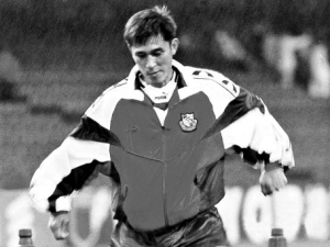 尹志強1974年18歲開始職業(yè)足球員生涯,先后效力于南華、精工、麗新等勁旅,1977年幫助中國香港隊擊敗新加坡,殺進(jìn)世界杯外圍賽亞太區(qū)決勝圈,揚威海外,有“亞洲第一中鋒”之稱。他在上世紀(jì)70年代中后期加入娛樂圈,客串亞視劇集和《執(zhí)法者》、《東方禿鷹》等電影,因而認(rèn)識米雪。1989年掛靴后從商。