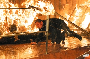 從《皇家賭場》開始,邦德再次回到寫實風格,克雷格回憶說《量子危機》里他跑到疲于奔命。影片的時長是所有邦德片中最短的,但動作戲卻兩倍于《皇家賭場》。四場打斗戲不容錯過,意大利的追逐、奧地利大眼睛劇院的群毆、巴拿馬夜宴的混戰(zhàn)及最后智利沙漠的終極PK。意大利追逐戲是現(xiàn)下非常流行的“跑酷”(Parkour)風格,需要克雷格在建筑物間靈敏穿梭,拍攝前兩個月的魔鬼訓練讓他身心俱疲。而克雷格覺得最困難的是一場船上打斗戲,因為船身搖晃,令他覺得如同坐過山車,拍得膽戰(zhàn)心驚,那場戲花了兩個星期才拍成。