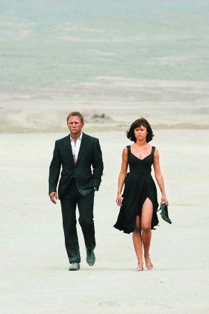 如果說(shuō)離了那些稀奇古怪的裝置,邦德還是可以打出個(gè)黎明,那邦女郎的異化可能表明《量子危機(jī)》走得更遠(yuǎn)。人們習(xí)慣把邦女郎看成是邦德業(yè)余生活的調(diào)劑品,而007電影也一直是女權(quán)保護(hù)組織的打擊對(duì)象。以往兩人看似較量實(shí)則曖昧的對(duì)話調(diào)情戲,在第22集里幾乎看不到,新邦女郎奧爾加·庫(kù)里連科(飾演卡米拉)具備《明日帝國(guó)》中楊紫瓊的身手,雖然有場(chǎng)香艷的裸背療傷戲,但她與007之間實(shí)際上是勢(shì)均力敵的合作關(guān)系。克雷格說(shuō),“我覺(jué)得邦德一直是個(gè)討厭女人的人,不過(guò)差別就在于我們一直在找好的女星來(lái)演強(qiáng)有力的邦女郎角色,她需要在邦德干錯(cuò)事時(shí)干凈利落地叫他‘死開(kāi)點(diǎn)’。”而庫(kù)里連科認(rèn)為《量子危機(jī)》中卡米拉“有自己的目標(biāo),有沒(méi)有邦德陪伴都會(huì)如此,這使她變得非常不一樣”。