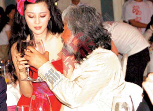 2006年,范冰冰身穿芭比娃娃裝,坐在張紀(jì)中大腿上。