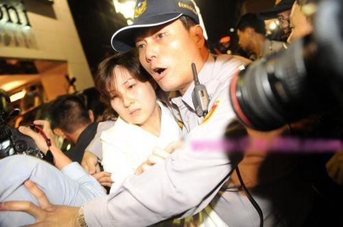 大陸媒體記者遭綠營(yíng)民眾圍堵辱罵,在警方保護(hù)下搭警車離開。
