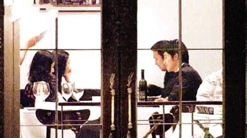 當(dāng)晚8時(shí)許,楊恭如與友人在銅鑼灣Da Domenico意大利餐廳吃晚飯,F(xiàn)場(chǎng)所見,兩男兩女面對(duì)面而坐,并開了兩瓶紅酒,眾人于席上有說有笑,兩位型男更不時(shí)與恭如碰杯,氣氛十分和諧。當(dāng)其中身穿黑色襯衣的高大型男說話時(shí),坐在對(duì)面的恭如不時(shí)托腮甜甜地望著對(duì)方放電。