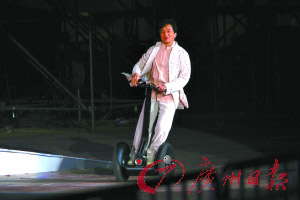 成龍駕駛電動(dòng)車出場。