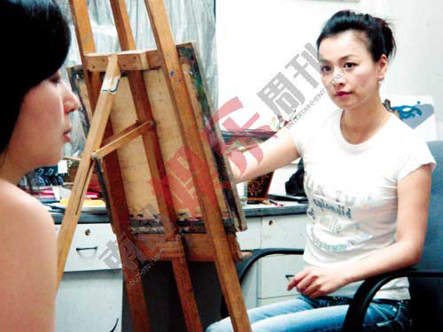 很快張庭就成為上師大美院的正式研究生,她那一屆只有她一個(gè)學(xué)生,專業(yè)是裝飾設(shè)計(jì),不過素描油畫是必修課。她常常一個(gè)人在畫室里畫人體模特,無人打擾,司機(jī)接送,滿身名牌,真的是這個(gè)學(xué)校里最高端的學(xué)生了。張庭每周三四天會(huì)定時(shí)練畫,8個(gè)小時(shí)不間斷,“表演是一種藝術(shù),它兼具理性和感性,我覺得美術(shù)跟表演是相通的!