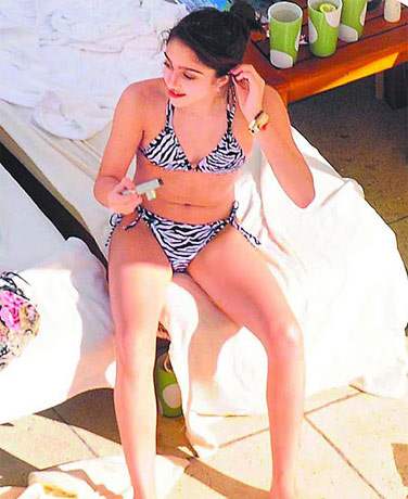 中新網(wǎng)12月9日電 “娜姐”麥當娜赴南美巡演,女兒蘿狄絲跟著去玩,在飯店泳池畔日光浴。今年12歲的她剛開始發(fā)育,卻學好萊塢女星穿上比基尼秀身材。
