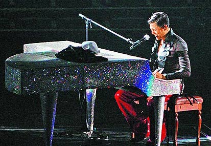此外,他還苦練2個(gè)月鋼琴,展現(xiàn)動(dòng)靜皆宜的誠(chéng)意,他說(shuō):“我每天半夜洗完澡后練琴,是拚命記下來(lái)的。”但前晚初彈《三岔口》時(shí),因太緊張頻出錯(cuò),他說(shuō):“后面彈不好,干脆重來(lái)好了!睕](méi)想到他重彈了5遍,最后說(shuō):“彈鋼琴好難喔!你們以為我是周杰倫啊!”流露可愛(ài)一面。但他的國(guó)語(yǔ)隨緊張變得更不輪轉(zhuǎn),他苦笑:“我好緊張!國(guó)語(yǔ)一直打‘折’!碑(dāng)場(chǎng)被歌迷糾正是打“結(jié)”,他說(shuō):“我又回到18年前,我錯(cuò)了!
