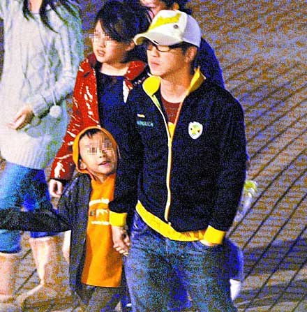 哈林(右)父兼母職牽著兒子出門逛街,小哈利開心地望著爸爸。