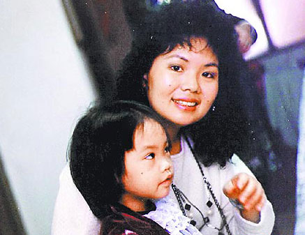 她(左)5歲時(shí),被美女?huà)寢尡г趹牙铩?