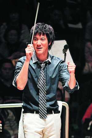 擔(dān)當(dāng)樂團指揮表現(xiàn)有板有眼。