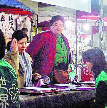 此攤一次收費(fèi)220元,用的是易經(jīng)加西方塔羅牌合璧的“先天塔羅”,她望著桌上擺的水晶球“法器”發(fā)楞,卻遲遲不敢把心中所求何事全盤托出,得知要填個(gè)人資料后,她露出驚訝表情,婉拒離去,記者上前詢問,店家不愿透露,僅低調(diào)說(shuō):“這是人家的私事,我們也不方便說(shuō)!