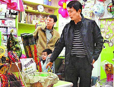 陳威陶(右)帶兒子(中)逛禮品店買(mǎi)玩具,小蝦米嚷著要買(mǎi)氣球。