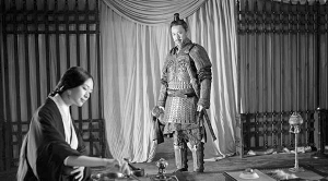 《赤壁(下)》延續(xù)著讓女人在戰(zhàn)爭里摻和到底的精神。小喬非但只出現(xiàn)在曹操的魂牽夢縈中,更親身披上黑斗篷夜闖曹營,又是當(dāng)說客又出美人計,成為海倫式傾國傾城的人物。雖然吳宇森日前澄清“《赤壁(下)》壓根沒有床戲”,但是被炒了許久的“周瑜小喬激情三分鐘”已經(jīng)讓小喬周圍漂浮著令人神往不已的香艷氣息。縱然沒有激情戲,縱然小喬幫曹操按摩的戲份已經(jīng)被刪除,但是“小喬版美人計”到底是如何拿下曹操的,仍然讓觀眾充滿了無盡的好奇與遐想。