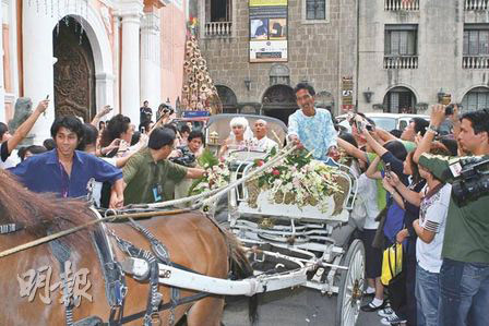 當(dāng)神父對張衛(wèi)健說可以親太太時(shí),一對新人儼如接吻魚親不停,足足親足一分鐘。兩人簽署結(jié)婚證書后,大家擁上爭相和一對新人合照。約于3時(shí)30分半,一對新人乘坐馬車離開教堂,張衛(wèi)健情不自禁再親吻張茜,聞風(fēng)而至的影迷均涌入教堂,和明星合照,再加上過百來自內(nèi)地、香港和菲律賓的傳媒,將教堂迫得水泄不通,好不混亂。