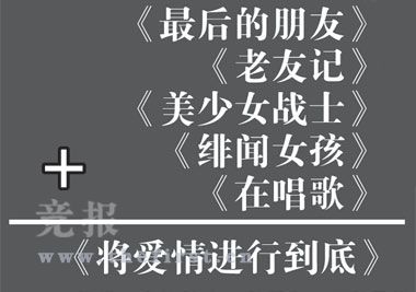 一堆縱橫交錯的演員,一段糾纏不清剪不斷理還亂的關(guān)系,全因一條紅絲帶而糾結(jié),話劇版《將愛情進(jìn)行到底》的海報實在非常有創(chuàng)意,可怎么好像很眼熟呢?原來世界各地的創(chuàng)意竟然如此相似,只不過日本電視劇《最后的朋友》用的是鮮明亮麗的紅線,美劇《老友記》選擇了手牽手的方式,熱播劇《緋聞女孩》和經(jīng)典漫畫《美少女戰(zhàn)士》索性完全摒棄了道具,臺灣組合鄒女的專輯封面《在唱歌》更在布局上動起了手腳,變得錯落有致。