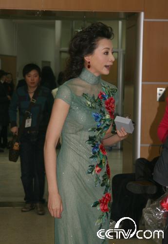 前幾次彩排,主持人一套衣服“一穿到底”,為了給除夕那天直播做準備,今天以兩身衣服出鏡。董卿一開場以一套大紅色的露肩禮服出場,戴著一對兒紅色的長型耳環(huán),半場過后換成一條橄欖綠色的旗袍式長裙。兩身衣服都有中式的韻味在里面,喜慶之余顯得端莊親切。主持人朱軍準備了一身黑色的西裝和一身金色的禮服。周濤由一身紅色的拖裙換成了一身藍色的禮服。據(jù)了解,在正式直播那天,主持人每人會換三身衣服,這次只是做個演習。