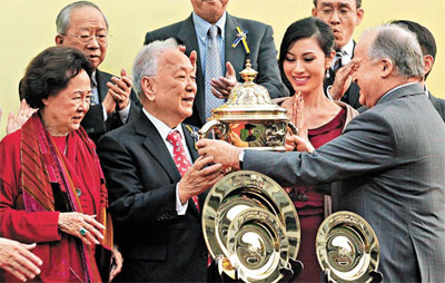 此外,身為亨亨前岳父的賭王何鴻燊,昨日巧合地現(xiàn)身馬場,與嘉欣撞到。問賭王是否覺得嘉欣肚凸似有喜?他風(fēng)趣地說:“不知道是不是(有孕)嘍!我不會望女仔的肚子。”