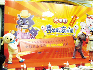 2009首部國(guó)產(chǎn)動(dòng)畫電影《喜羊羊與灰太狼之牛氣沖天》目前的全國(guó)票房已達(dá)8000萬元,成為創(chuàng)紀(jì)錄的“國(guó)產(chǎn)動(dòng)畫第一片”。該片昨日在北京召開慶功會(huì)上宣布,電影“喜羊羊”的續(xù)集已經(jīng)著手啟動(dòng)。
