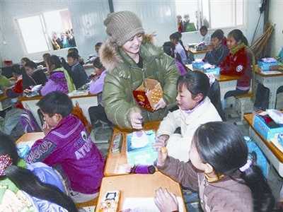 據(jù)報(bào)道,阿嬌探訪的是位于重災(zāi)區(qū)北川的白坭鄉(xiāng)小學(xué)。主管這所小學(xué)的黃校長介紹說,阿嬌此次帶來400多雙嶄新的棉鞋、手套、襪子,保證學(xué)生們每人一份。同時(shí),還有部分七八成新的圍巾、帽子等,總價(jià)值3萬多元。“她們工作很仔細(xì),從學(xué)前班到6年級(jí),棉鞋、手套、襪子,碼子都合適……” 黃校長還透露,這些山里農(nóng)村的娃娃,并不像城里同齡小孩一樣對(duì)阿嬌的名氣、過去有了解,阿嬌的和藹可親得到了孩子們的認(rèn)可。 在一張曝光的圖片中,阿嬌還親切地給一個(gè)婦女背上的女孩子喂桔子。