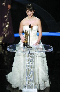 獲獎名單最終由斯溫頓宣讀,佩內洛普拿下了第一個頒出的獎項——最佳女配角,這也意味著此前網(wǎng)上流傳的獎項名單是假的。因為外泄的獎項名單顯示,艾米·亞當斯才是獲獎人。上臺領獎的佩內洛普仍操一口帶有西班牙口音的英語,她甚至笑言“45秒感言時間太短了,擔心說不完長長的感謝名單”,“我要感謝導演給自己機會演出這樣一個角色,感謝父母和親朋好友。 ”說著說著,佩內洛普一度哽咽,她也同時感嘆西班牙語已成為國際化語言,并用自己的母語又說了一段感言。