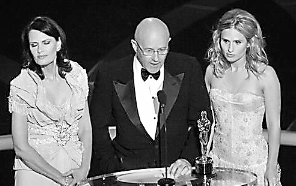 本屆奧斯卡頒獎禮最感動的瞬間有兩個,一是紀(jì)念單元放出保羅·紐曼的照片時,現(xiàn)場唏噓一片。另一次,則是希斯·萊杰憑借“小丑 ”一角拿下最佳男配角獎的時候。當(dāng)然,已經(jīng)逝世的萊杰沒法親身領(lǐng)獎了,他的前女友米歇爾·威廉姆斯與女兒馬蒂爾達(dá)也沒出現(xiàn),代替希斯上臺領(lǐng)獎的,是他那年邁的父母以及姐姐。希斯的姐姐穿起高跟鞋和緊身晚禮服走起路來就稍微有點(diǎn)踉蹌,父親掏出事前準(zhǔn)備好的小紙條念出感謝詞的瞬間,底下的賓客全體起立致敬,向這三位失去親人的好萊塢局外人致敬。這時鏡頭帶到溫斯萊特,她兩眼淚花閃閃……