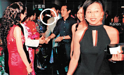 對(duì)于Karen早前指T富商與她相好時(shí)一直隱瞞有家室,T富商前日展示了兩張02年其正室次子結(jié)婚時(shí)的照片,原來(lái)當(dāng)時(shí)Karen也出席了這個(gè)婚宴,而且還與T富商的正室握手。T富商說(shuō):“02年我兩個(gè)做保險(xiǎn)的女性朋友介紹下認(rèn)識(shí)Karen,后來(lái)我兒子結(jié)婚,我就請(qǐng)她來(lái)。所以她怎么會(huì)不知我有家室呀?”