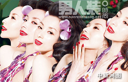 走近她,像走近一個布滿玻璃器皿的廣場,輕微的投石問路就會引來一陣急促而清脆的撞擊。她的表達流暢,敢言又不失穩(wěn)妥。你曾在整個民族最盛大的晚會上見過這張歌唱的面孔,也曾經(jīng)被感染,吃著瓜子喝著茶水與身邊的人們分享歡笑。夜鶯的生命用來歌唱世界的美妙,湯燦用美貌來敲開《男人裝》的門。她的啁啾劃出團團的曲線,劃破攝影師的鏡頭——也許你會疑慮,究竟是誰在聆聽民族的歌唱,手語是告別時代的圖騰,聒噪的社會,再沒人尋向這歌聲?