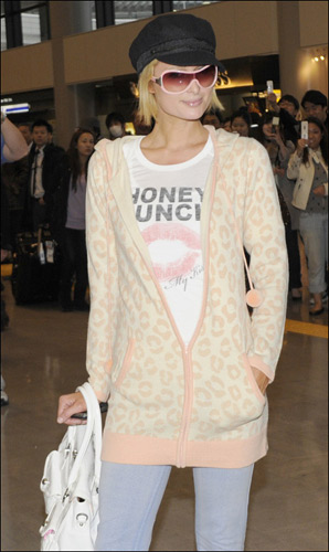 話題女王帕麗斯·希爾頓再次甜美出擊,這次去日本東京為自己的產(chǎn)品做宣傳的帕麗斯·希爾頓甜美無比,黑色的畫家帽歪帶,粉色邊框的墨鏡搭配嫩嫩的粉色開衫外衣和最流行的嘴唇印記短袖衫,甜美的像是17 18歲的少女?吹絼倓傔^完28歲生日的帕麗斯·希爾頓還要繼續(xù)可愛下去。
