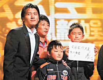 霆鋒多年來一直資助50名內(nèi)地失學(xué)兒童,前晚大會安排頒獎給霆鋒的5名兒童,皆來自四川地震災(zāi)區(qū)都江堰,且全是由霆鋒資助上學(xué)。近一年來備受家事困擾的霆鋒,首次見到自己捐助的小孩,頓時百感交集,他緊緊地抱住這些小朋友,然后眼濕濕哽咽說:“每當(dāng)我拍戲受傷或者心情低落時,我就會想自己不能倒下,可能有50個家庭靠我給他們一頓飯吃。因為認(rèn)識了他們,我才知道自己有多幸運(yùn),同樣是黃種人,為什么謝霆鋒可以追逐自己的夢想,他們卻沒有這個機(jī)會。”最后他更鼓勵小朋友說:“叔叔不怕痛和累,你們也不能放棄。”